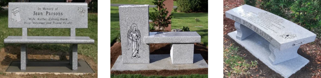 Bench tombstones are designed in the form of benches to offer a place to sit and relax, in cemeteries and public areas like gardens, parks, etc. This way it serves both purposes: a grave marker for the deceased as well as a resting place for the living. Family and friends can come and sit on these benches to connect to their ancestors even after death, signifying an ongoing relationship. They are made of granite and marble stone with the common dimensions 36”, 48”, and 60”. Bench monuments, bench tombstones, bench gravestones, memorial benches, and cemetery benches are the other names of bench headstones.