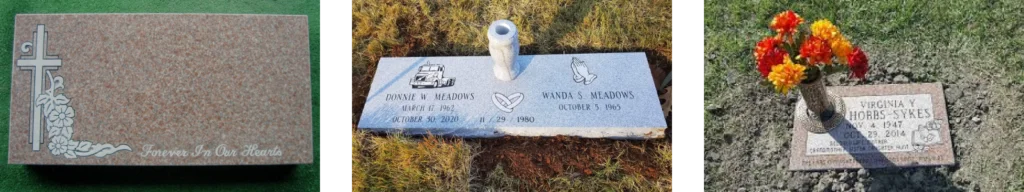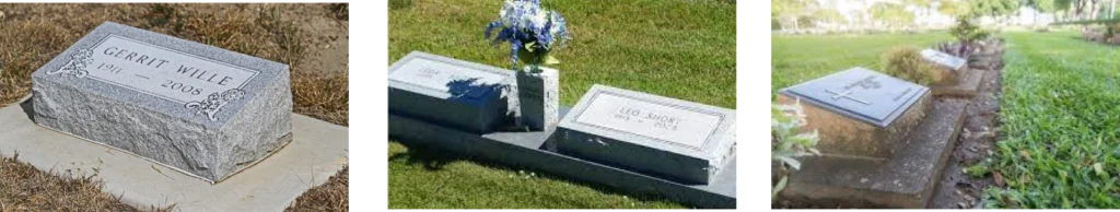 Flat headstones or markers are completely level with the ground as suggested by their name. They lie at the ground level in a rectangular shape with a slab thickness of approx. 4 inches. As per their appearance and installation, flat grave markers symbolize simplicity and a modest approach to the memory of the deceased. They are most commonly crafted using granite and bronze material to withstand outdoor conditions. They can also be customized into single flat markers and companion flat markers.