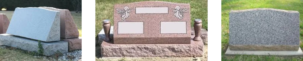 Traditional upright tombstones consist of two stone slabs: the base slab and the tablet slab. The tablet part stands erect on top of the base having information about the deceased’s name, age, etc. It can be crafted in various finishing styles such as rooftop, oval top, flat top, and the most popular serpentine top.