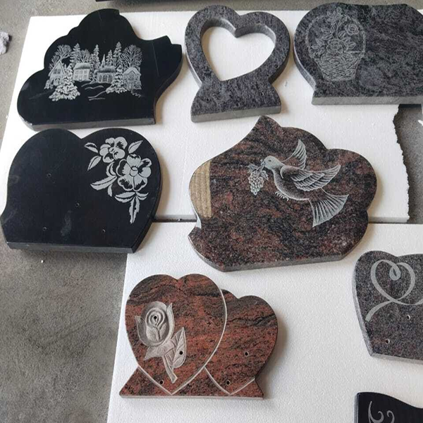 Granite comes in a variety of colors and finishes. Common colors include black, gray, green, and red, with black granite often being the most popular due to its elegance and contrast with white or gold engravings. The rarity and quality of the stone used will affect pricing, with premium grades or rare colors being more expensive.