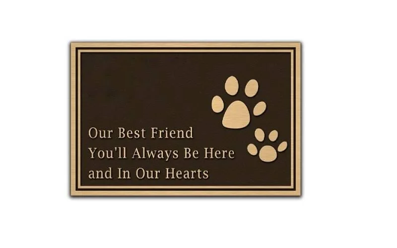 Bronze plaques with a paw print are one of the coolest dog grave ideas or cat grave ideas. First of all, using bronze material for pet grave markers is a more convenient choice. It can easily withstand environmental changes. A bronze plaque with a casted paw print including the pet’s name, and special message would be a perfect memorial for your beloved furry companion. You can display this plaque either on the ground or hang it in a nearby tree in the garden.